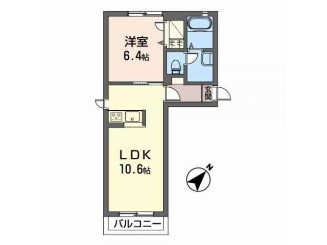 | 詳細間取 | 1LDK (洋6.4帖×1、LDK10.6帖) | ||