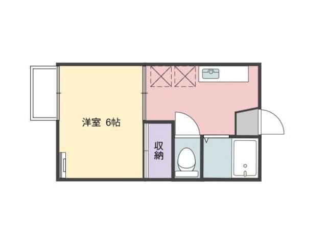 | 詳細間取 | 1K (洋6帖×1、キッチン4帖) | ||